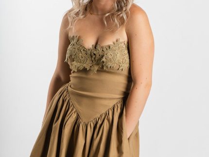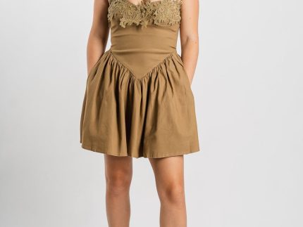 Crochet strapless romper dark beige