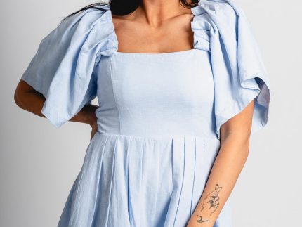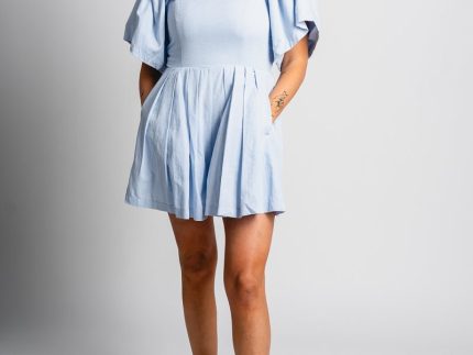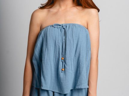 Strapless flounce skort romper denim blue