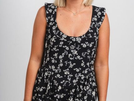 Sleeveless drawstring romper black $41.09 Original price was: $41.09.$20.55Current price is: $20.55.