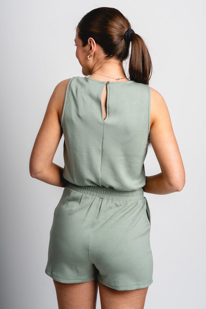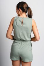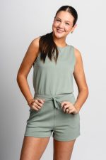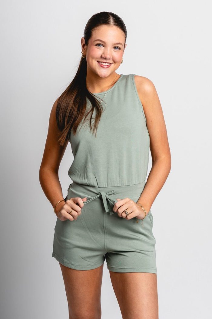 Sleeveless drawstring romper sage green
