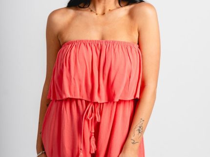 Strapless ruffle romper coral