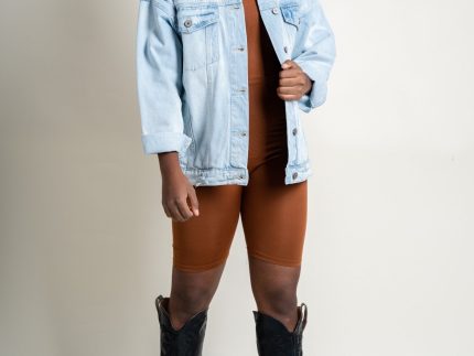 Zip back biker romper brown
