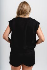 Sleeveless scuba v-neck top from Lush Fashion Lounge women’s boutique in Oklahoma City.Lush boutique in OKC has a variety of cute matching sets for Su