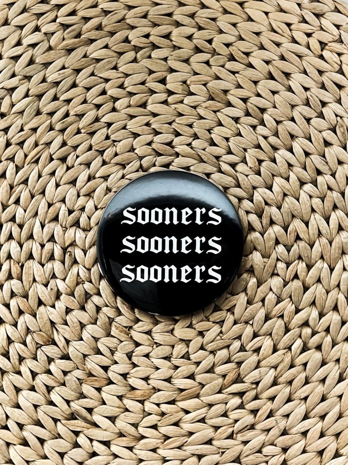Sooners repeater game day button from Lush Fashion Lounge women’s boutique in Oklahoma City.