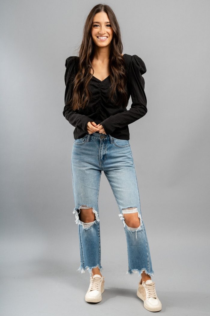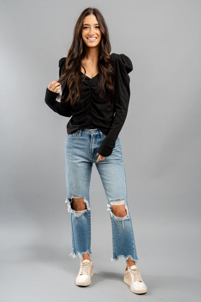 Long sleeve tie back top from Lush Fashion Lounge women’s boutique in Oklahoma City.Lush boutique in OKC has a variety